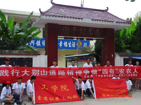 本网讯:7月17日,由我校工学院素质拓展工作部12名同学组成的赴太和县李兴镇谢千村暑期社会实践团完成既定任务,返程归来。在为期五天的服务时间里,服务团以“践行大别山道路精神、争做‘四有’安农人”为主题,在指导教师的带领下,结合团队成员专业背景和服务地实际情况,紧密围绕科技支农、政策宣讲、文化宣传、爱心支教、爱心帮扶、社会调查等方面展开了一系列“走基层、访典型、树信念”活动,取得了显著成效。