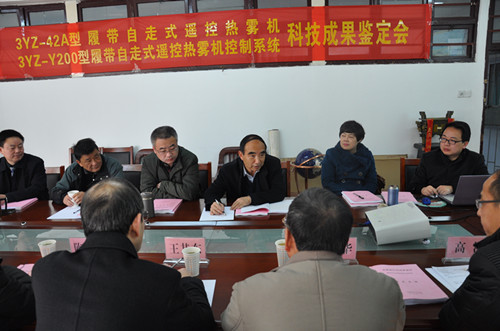 1月10日,受安徽省科技厅委托,安徽省科技成果转化服务中心组织合肥工业大学、安徽大学、安徽理工大学等单位专家在工学院会议室对安徽农业大学研发的“3YZ-42A型履带自走式遥控热雾机、履带自走式遥控热雾机控制系统”两款产品进行科技成果鉴定。工学院院长曹成茂教授和科技处周逸辛副处长应邀出席,课题组程备久教授、丁克坚教授、陈黎卿教授和郑泉教授等成员参加。