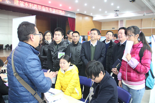 本网讯:12月5日上午,由招生就业处主办、工学院和经济技术学院承办的2015届机械电气、建筑水利类毕业生专场招聘会在欣苑食堂四楼多功能报告厅举办。副校长熊健在招生就业处负责同志、工学院和经济技术学院党政领导的陪同下亲临现场指导工作。
