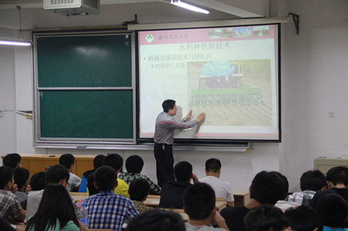 本网讯:5月12日,工学院院长曹成茂教授在勤学楼阶梯教室为全校学子做了题为《自动化技术在农业生产中的应用》专题学术辅导讲座。来自全校200余名同学现场认真聆听了讲座。