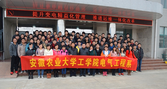 本网讯:为提升电气专业现场专业知识能力,将理论知识与工程应用实践有机结合。12月6日,由电气工程系系主任马德贵副教授和吴扬副教授带领10级电气工程及其自动化专业本科学生赴安徽省电力公司肥西变电站进行专业实践活动,肥西变电站刘亮站长全程接待并做了实习指导。
