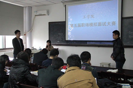 决赛分为自我介绍及竞聘岗位演讲、必答题、职场故事编说等三个环节。同学们经过前期精心准备,在各个环节纷纷展示出良好的职场素养、较强的职场面试技巧以及较佳的职场应变能力,特别是在职场故事编说环节,各自根据三个随机词语编说职场故事并总结出职场规则,充分展现了工科学子严谨、理性而又不失活泼的青春风采。会后,刘柳同志还与选手们进行了经验交流。
