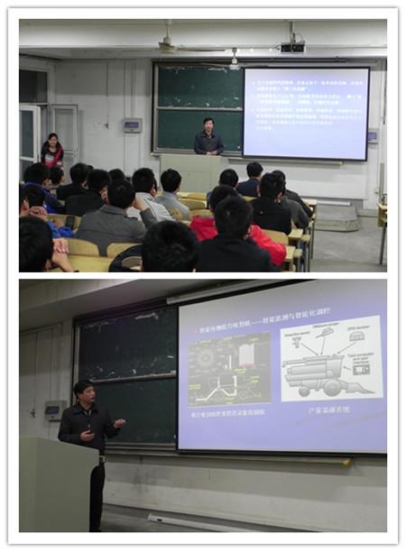 本网讯:11月2日下午,江苏大学博士生导师、农业工程研究院院长毛罕平教授应邀在第三教学楼102教室为工学院师生作了《农业装备智能化技术》学术报告。学术报告会由工学院院长曹成茂教授主持。学院相关专业教师、研究生及农机专业本科生100余人聆听了学术报告会。