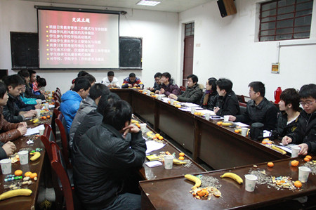 会上,院级学生组织主要负责同学进行了2012年度工作汇报和2013年度工作计划部署。与会班长、团支部书记围绕当前学风建设、班风建设情况和素拓学分主修情况、学生参与学校、学院活动现状等议题进行了热烈讨论,就班级日常教育管理工作模式、班费日常使用管理、宿舍文化氛围营造就等方面进行了互动交流,并提出了对学校、学院的教学、学生管理等方面的可行性意见及建议。