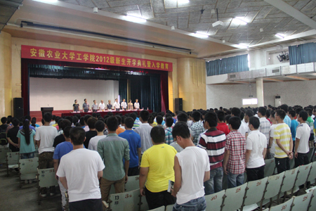 9月2日上午,工学院2012级新生开学典礼暨入学教育大会在校大学生活动中心举办。学院党委书记陶志林同志、院长曹成茂教授、副院长朱德泉教授、院党委副书记刘柳同志出席会议。出席大会的还有学院教授代表邵陆寿、尹成龙、郑泉及各系部主任。学院2012级新生辅导员、班主任及全体新生参加了会议。会议由刘柳同志主持。