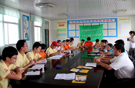 集中实践活动结束了,但是后续工作还远远没有结束,队员们都清楚的认识到接下来应该做的就是积极思考、认真总结,努力撰写社会实践报告,为自己、为当地的百姓交出满意的答卷。“青春九十年,报国永争先”,服务团光荣地完成了此次暑期社会实践活动,用行动向建团九十年献上了自己的礼物,队员们表示接下来将继续勤奋学习,勇于创新,用更加优异的成绩迎接党的十八大胜利召开!