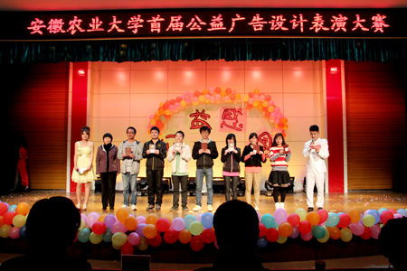 3月28日晚,安徽农业大学首届公益广告设计表演大赛决赛在欣苑四楼学生活动中心多功能厅成功举办,工学院参赛队在本次比赛中获得骄人成绩,参赛作品《爱心传递》、《拒绝占位文化》分获一等奖、二等奖。