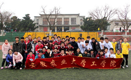 本届“工学杯”足球赛历时三周,学院大部分专业积极组队参加了比赛,经过激烈角逐,09电气专业与09农机专业会师决赛。最终,凭借精湛的球技、默契的配合、出众的实力,09农机专业以1:0的比分击败对手,夺得冠军,09电气、11农工和09车辆分列二、三、四名。最佳射手称号由11农工的潘毅和09电气的夏国威同学获得。决赛后举行了颁奖仪式,刘柳同志、团总支老师分别为获奖队员颁发奖状和奖品并合影留念。