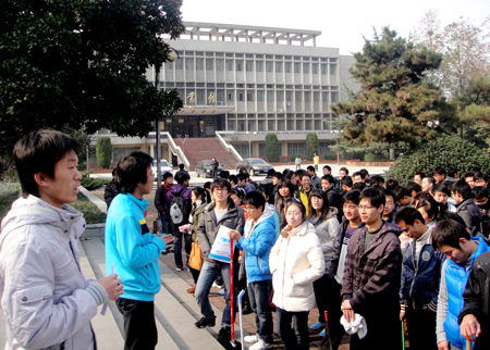 中午12点半,全体同学带着清扫用具在三教门口集合,在组织者分配任务后,同学们分成4组,分别对校大礼堂、三教102、133教室、勤政楼前空地等公共场所进行了认真而细致的清扫。每位同学都本着服务奉献的态度,积极参与,大家分工明确,整个活动进行得有条不紊。虽然天气非常寒冷,但丝毫没有阻挡同学们的热情,在历时一个多小时的集体清扫过后,各区域的面貌都焕然一新。