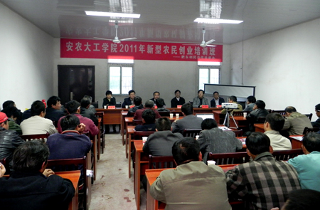 10月29日,工学院在肥 东县店埠镇举办的农机大户农民创业培训举行了开班典礼并进行了第一阶段的三天集中授课。肥东县农机局罗健副局长、肥东县农机推广站郑贤站长、我校继续教育学院副院长汪保根、工学院曹成茂院长、詹贤芳副院长等领导出席了开班典礼,承担此次培训教学任务的农机系教师也参加了开班仪式。开班仪式由工学院农业机械系主任伍德林老师主持。