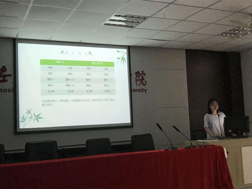 6月10日晚在三教202教室,土木水利系副主任周婷副教授面向土木工程、农业水利工程专业开展了考研辅导讲座。周老师根据近三年我校土木工程、农业水利工程报考和录取相关数据,就如何选择第一志愿、如何提高第一志愿录取率、如何复习备考,给同学们提出了很多建设性意见。会上还邀请了2017级土木工程专业余艳海、2017农业水利工程专业葛诗阳同学分享了备考经验。