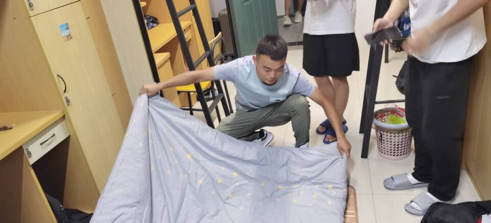 保持内务整洁是良好生活习惯养成的基本要求,这体现了一个人对于生活的态度。军训期间,7名退役复学大学生们耐心的对全院80个宿舍逐一进行内务整理教学指导,在他们的帮助下,新生们逐渐学会了如何清扫地面、清理墙面、整理桌面、整饬床面,真正做到“面面”俱到,有的同学甚至在反复的练习下也能够将被子像模像样的叠成了“豆腐块”。
