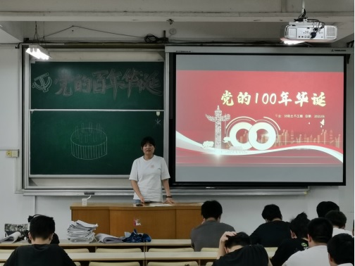 会上,各位辅导员采用宣讲,看视频等形式,带领同学们一起回顾中国共产党成立以来的奋斗历程,让大家深刻理解1921年中国共产党的诞生是中国历史发展的必然,是中国共产党在多灾多难的近代中国,带领全国人民进行了长期的、艰苦卓绝的斗争,付出了巨大的牺牲,使中国走上了独立富强的道路。一幅幅年代久远的图画,一个个精彩的故事,一首首激情的歌曲,诠释着先辈们坚韧不拔、顽强拼搏、艰苦奋斗、不怕牺牲,为革命事业勇于献身的大无畏精神,增强了同学们热爱党、热爱祖国的情怀,更让他们认识到了努力学习、自强奋发的重要性。各班级结合学生每日健康打卡、考试诚信教育、防范网络电信诈骗、心理健康教育、宿舍用电安全等内容纳入班会内容,教育引导学生诚信考试、健康生活。