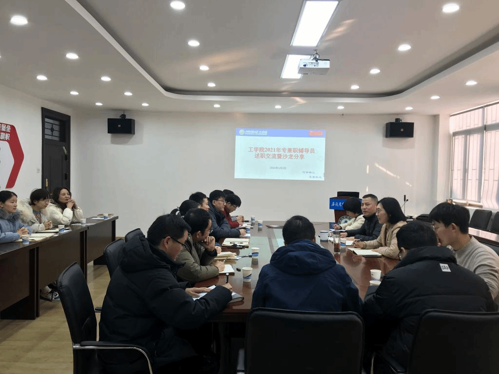 1月2日,工学院组织开展2021年专兼职辅导员述职交流暨辅导员沙龙分享会,会议由院党委副书记张国学主持,学工部(处)刘柳副处长应邀出席了会议,学院全体专兼职辅导员参加了会议。