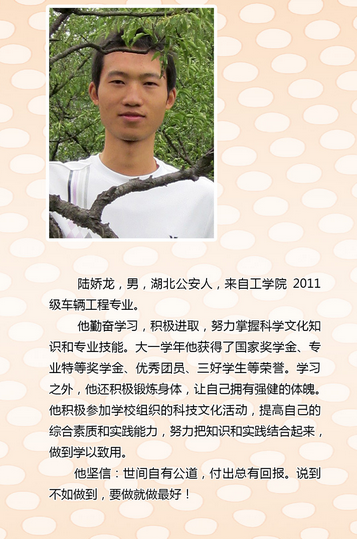 2、各专业推荐1名国家励志奖学金获得者,学院从推荐名单中选取2名学生报送至学校参展。