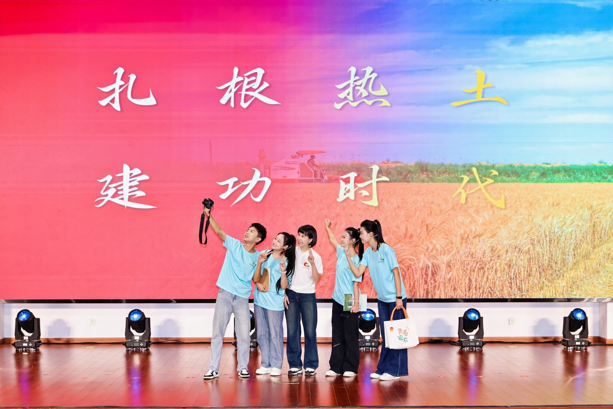 朱如意同学分享了他们在皖北大地上用数智农机助力乡村振兴的实践故事。他们深入田间地头,与当地村民、种植大户进行深度访谈.作为皖北粮仓,埇桥区粮食产量实现“二十一连丰”,是“四良协同”理念天然的试验田。但这里也存在小农户培训缺位、智能装备渗透率低的痛点。为此,他们组织了多场农机操作培训活动,为当地培养了一批懂技术、会操作的新型农民。窦成功则出演情景思政课《扎根》,在舞台上,他手捧大湾村的泥土,眼神坚定地说出那句“这土里长的不是庄稼,是希望!”那一刻,他仿佛真的成了那个从城市走向田野、从金融梦转向乡土情的青年。演出结束后,他感慨道:“以前总觉得‘扎根’是个口号,直到捧起那把土,看到老乡眼里的光,我才明白——我们脚下的土地,才是青春最该播种的地方。”尤晓博在情景剧《我们的出征》中饰演合肥工业大学学生代表,铿锵讲述团队深入亳州小怀村,探索集体经济振兴之路。当他说出“为乡村振兴提供工大方案”的誓言时,内心深受触动:“那一刻,乡村振兴不再是一个概念,而是我们这一代人的责任与担当。”