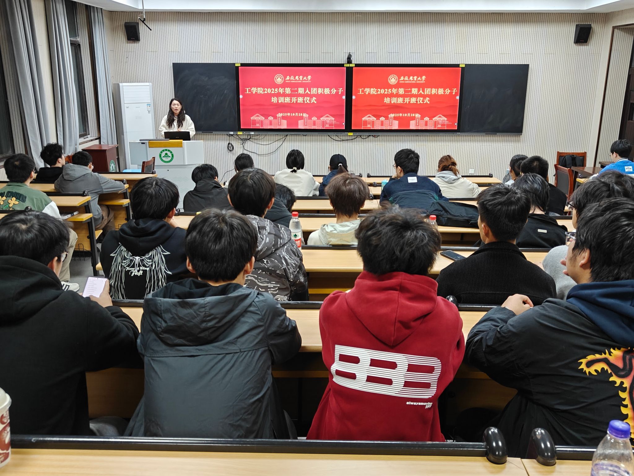 本网讯 10月28日晚,工学院在101教室举行2025年第二期入团积极分子培训班开班仪式,会议由学院团委老师主持。