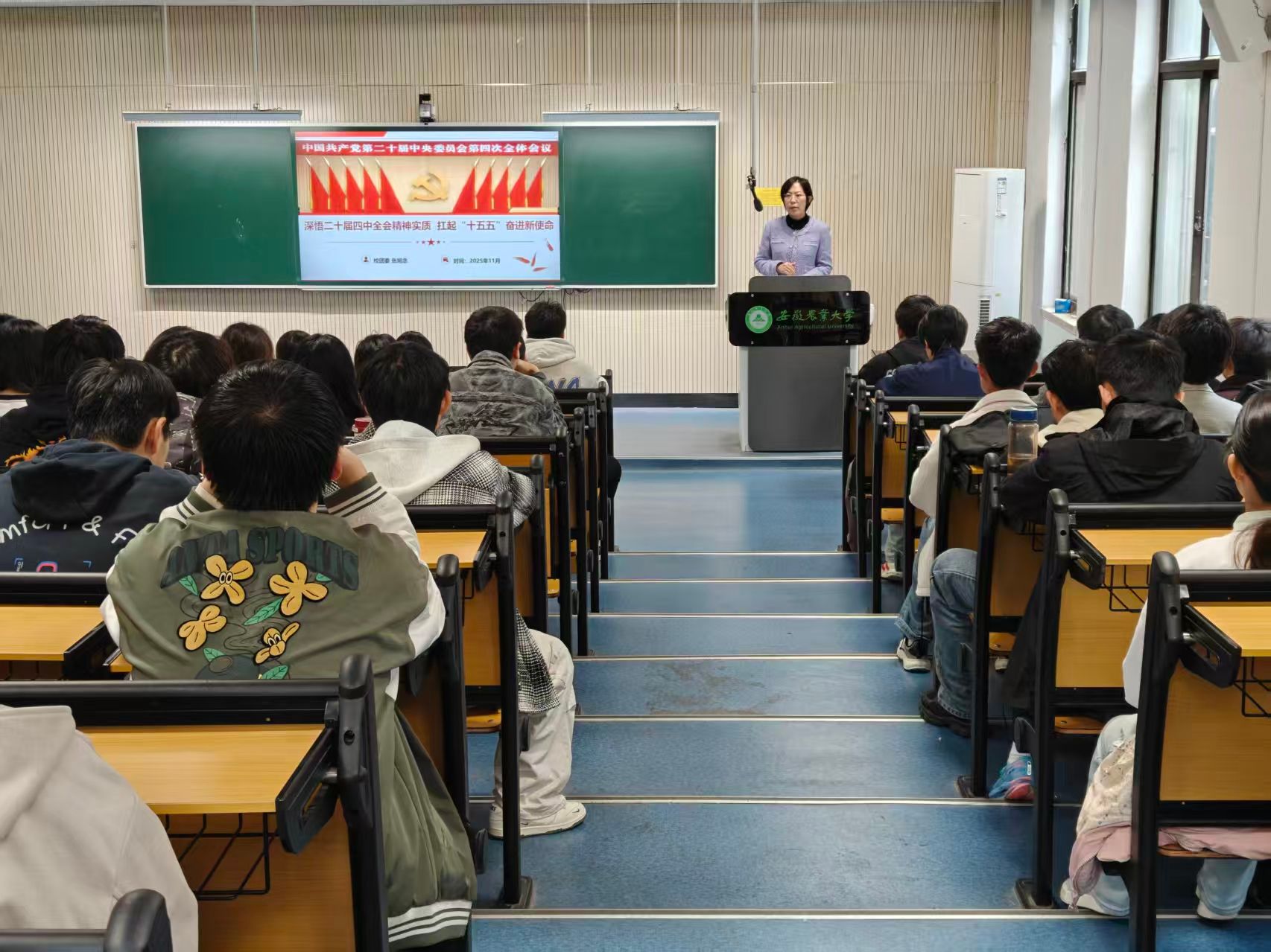 11月6日,校团委副书记张旭念给新一期发展团员开展《深悟二十届四中全会精神实质 扛起“十五五”奋进新使命》专题培训。她指出,党的二十届四中全会意义重大,系统总结了新时代治国理政的卓越成就与宝贵经验,并就坚持和完善中国特色社会主义制度、推进国家治理体系和治理能力现代化作出了新的战略部署,是新征程上指引全党全国各族人民向着强国建设、民族复兴宏伟目标奋勇前进的重要会议。深入学习领会全会精神,对于青年一代把握时代脉搏、明确前进方向至关重要。参训团员纷纷表示,通过此次专题培训,对党的二十届四中全会精神有了更全面、更深入的理解,对国家发展蓝图和自身肩负的使命有了更清晰的认知。