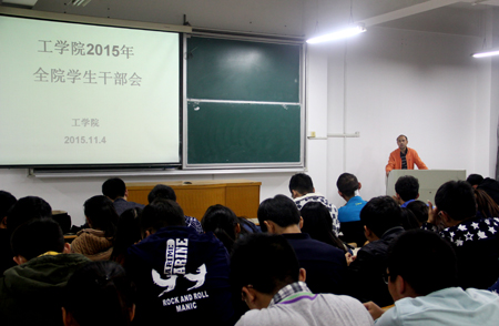 为进一步做好学生工作,更好地发挥学生干部在全院学生工作中的作用,11月4日晚上,工学院在勤学楼327教室召开学生干部会议。学院党委副书记孙福出席了会议并讲话,院级学生组织成员及学院各年级、各专业学生骨干共计200余人参加了会议。会议由学院团委老师主持。