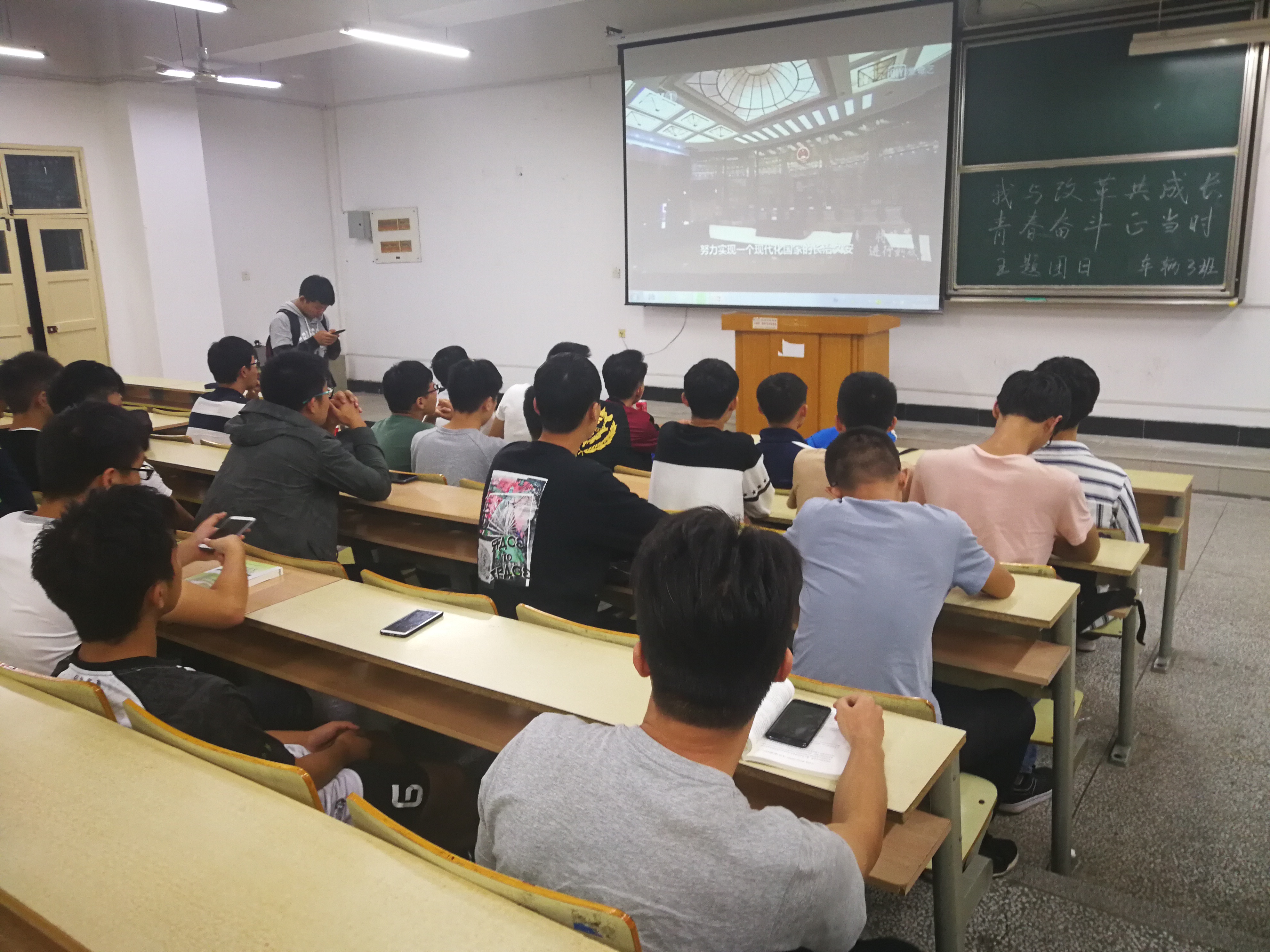 10月9日,17车辆工程3班的全体同学在团支书的组织下,开展了一场“我与改革共成长,青春奋斗正当时”主题班会活动,来宣传改革开放四十年来祖国取得的伟大成就,进一步提升同学们的政治素养。