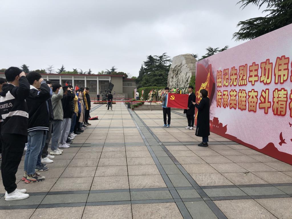 清晨,烈士陵园内气氛庄重,学生代表依次向烈士纪念碑敬献鲜花,向革命先烈鞠躬、默哀致敬,表达对革命先烈的无限崇敬和缅怀之情。随后,学生党员在纪念碑旁,面向党旗庄严宣誓,重温入党誓词,牢记初心使命。