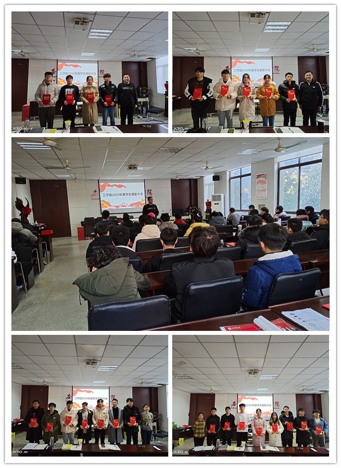 为表彰先进,更好发挥学生朋辈榜样示范作用,工学院于12月16日中午在学院大楼202室召开了2019-2020学年学生表彰大会。工学院党委副书记、副院长张国学同志、院团委老师、获奖学生代表以及全体班长、团支书同学参加了会议。
