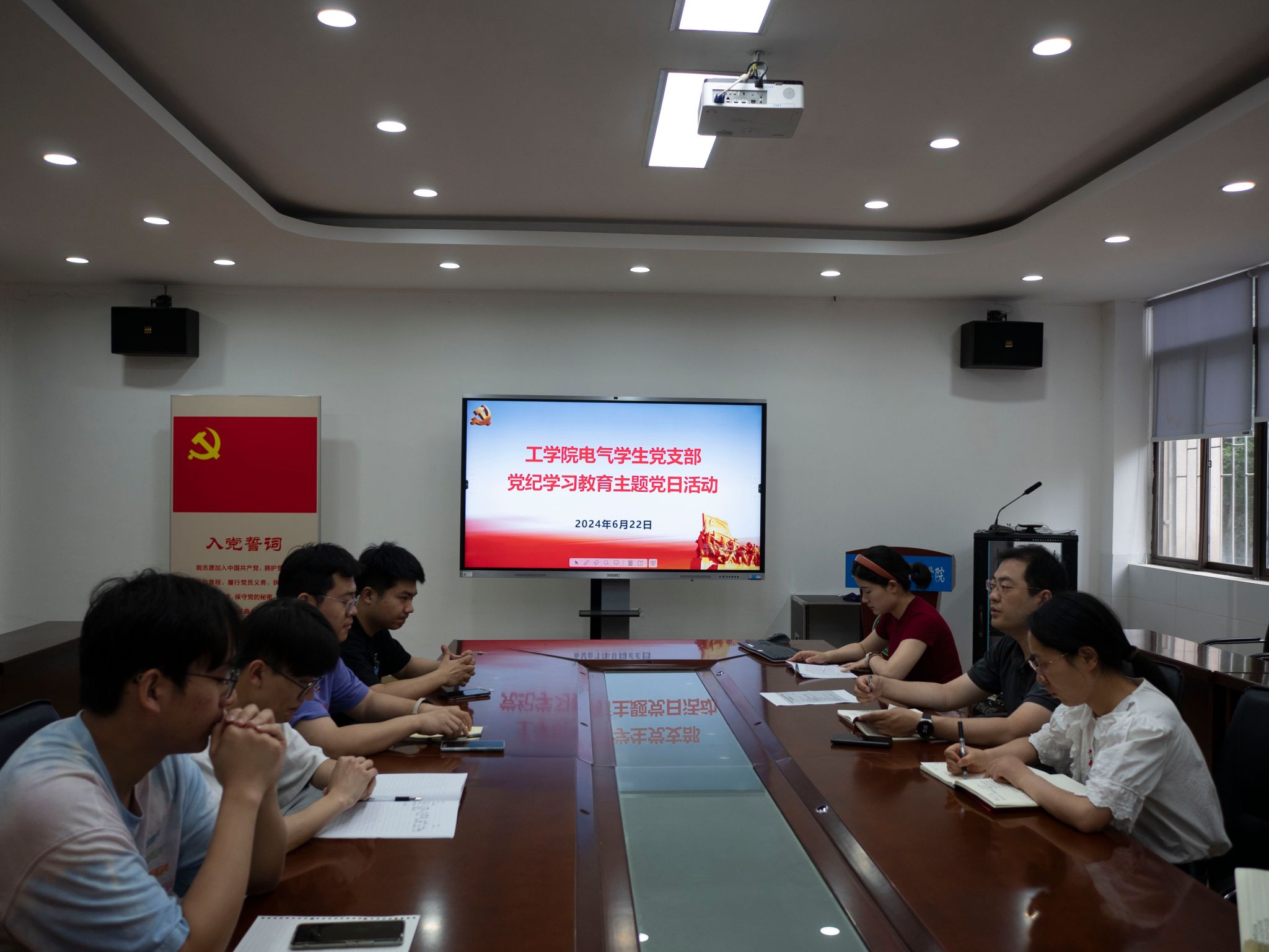 6月22日下午,电气学生党支部在学院229会议室开展“政治生日忆初心 党纪教育正风气”主题党日活动,21名在校党员参加。