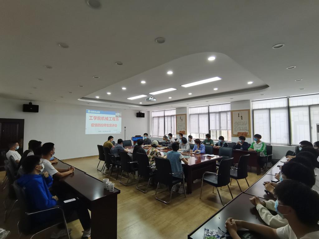为扎实做好疫情防控,落实《工学院包保工作实施办法》部署要求,4月12日,机械工程教工党支部联合全体机制专业学生开展疫情防控主题党日活动。活动采取线上线下相结合的方式开展,机械工程教工党支部支委、机制专业辅导员、机制学生支部书记、各年级机制专业班长和团支书通过线下会议参与集中学习,机制专业全体学生通过线上会议参与集中学习。学院副院长许良元出席本次活动,会议由组织委员孙兴冻主持。