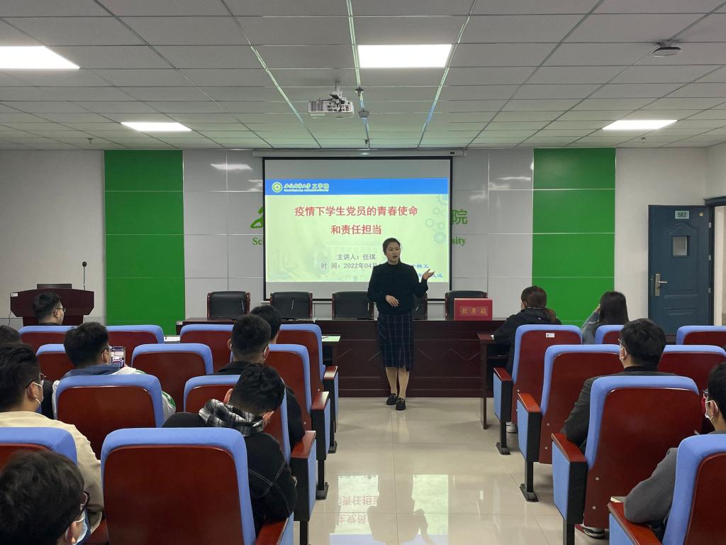 任琪以“疫情下学生党员的青春使命和责任担当”为主题,给支部全体党员上专题党课,她结合当下疫情防控形势,要求全体学生党员积极践行“四好四带头”要求。一是做好模范表率,带头遵守疫情防控规定。要从讲政治的高度重视疫情防控工作,坚决杜绝麻痹思想和侥幸心理,把疫情防控工作作为当前最重要的政治任务抓紧抓实。二是守好党员身份,带头健康成长成才。学生党员要珍惜党员身份,真正做到“平常时候看得出来,关键时刻站得出来,危急时刻豁得出来”。三是当好桥梁纽带,带头维护校园和谐。要充分发挥学生党员“连心桥”作用,做好上传下达,及时收集回应诉求,维护学生权益,让学生真正感受到学校“以生为本”的办学理念。四是讲好安农故事,带头汇聚网络正能量。要用好网络阵地,做到敢于发声,善于发声,坚决对网络不文明行为“亮剑”,敢于同网上的杂音噪音、歪风邪气做斗争,增强爱校荣校意识,积极传播网络正能量。(刘立超 通讯员:刘灿)