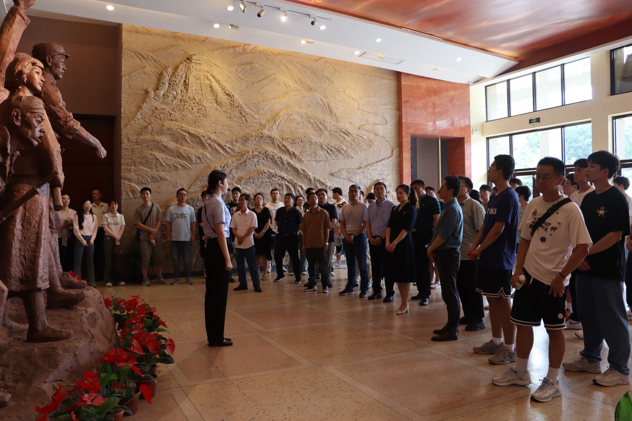 “我志愿加入中国共产党,拥护党的纲领,遵守党的章程......”在鲜红的党旗下,全体党员举起右拳进行庄严宣誓,老党员在重温誓词中追忆入党初心,牢记使命担当,新党员在铮铮誓词中接受思想洗礼,坚定理想信念。随后,大家来到安徽革命烈士事迹陈列馆参观学习,一件件珍贵的史料文物,再现了革命先烈们为民族解放事业英勇献身的铮铮铁骨与战火烽烟,在场的党员们真切地感受到中国共产党人不畏艰险、舍生忘死的革命精神。