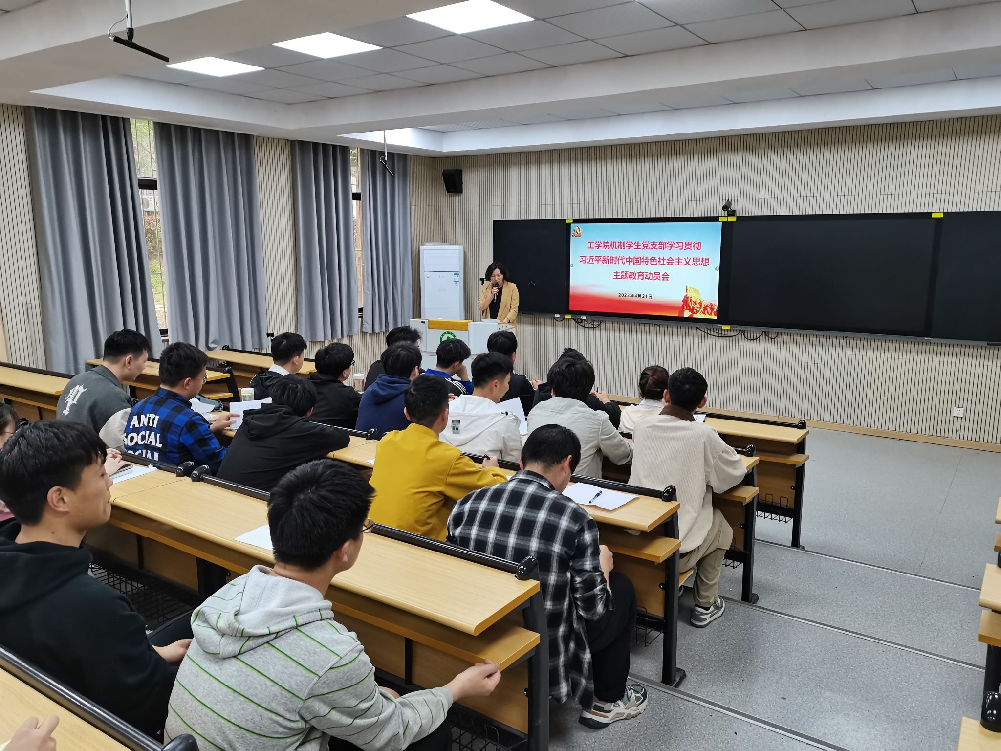 本网讯 4月21日下午,机制学生党支部召开学习贯彻习近平新时代中国特色社会主义思想主题教育动员会。会议由党支部书记方芳主持,支部全体党员参加会议。