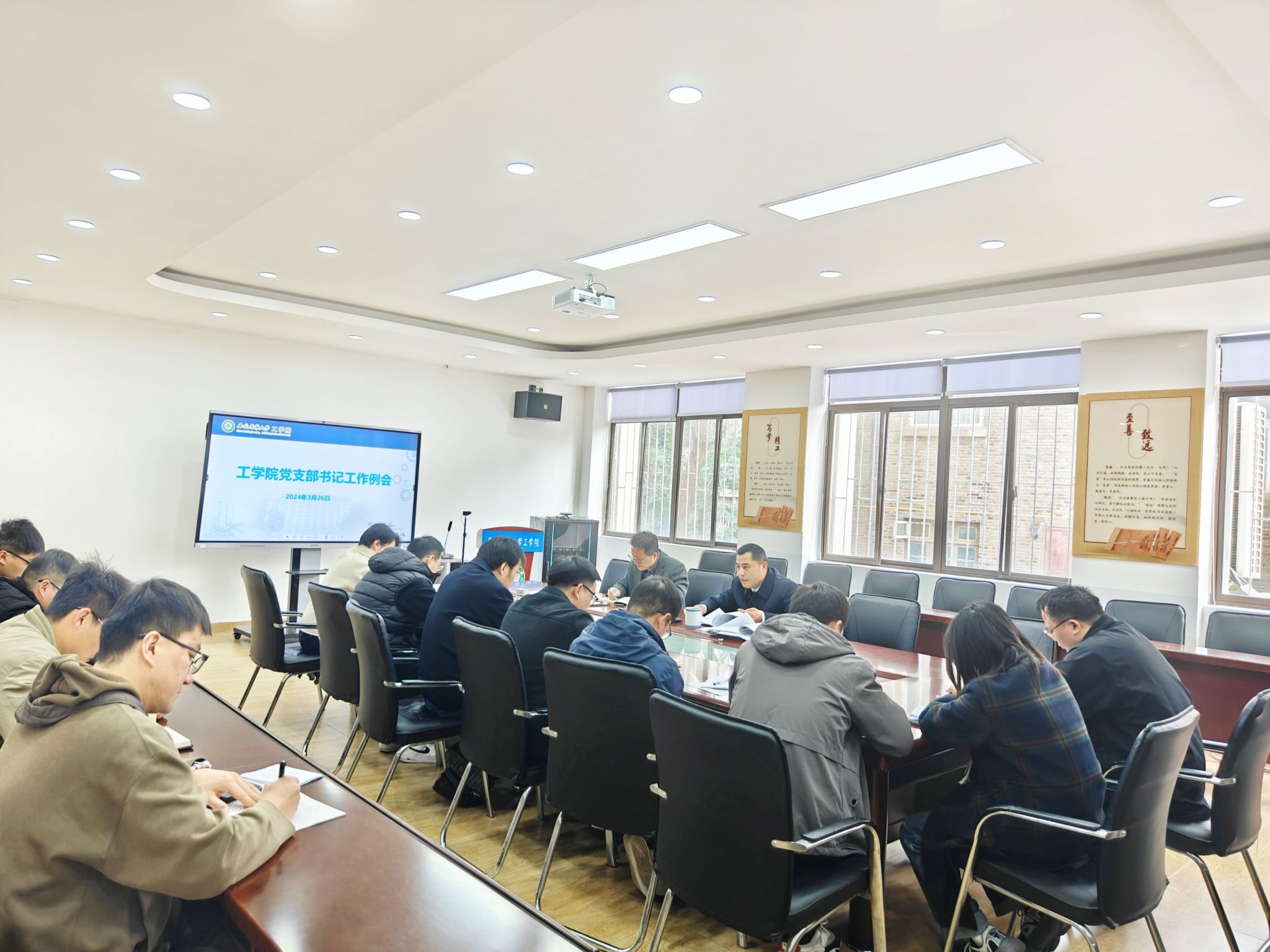 会议就学院党支部换届选举工作和“党建工作样板支部”培育创建进行布置。(图/文/代梦蝶 编辑/陈鑫诚 审核/张国学)