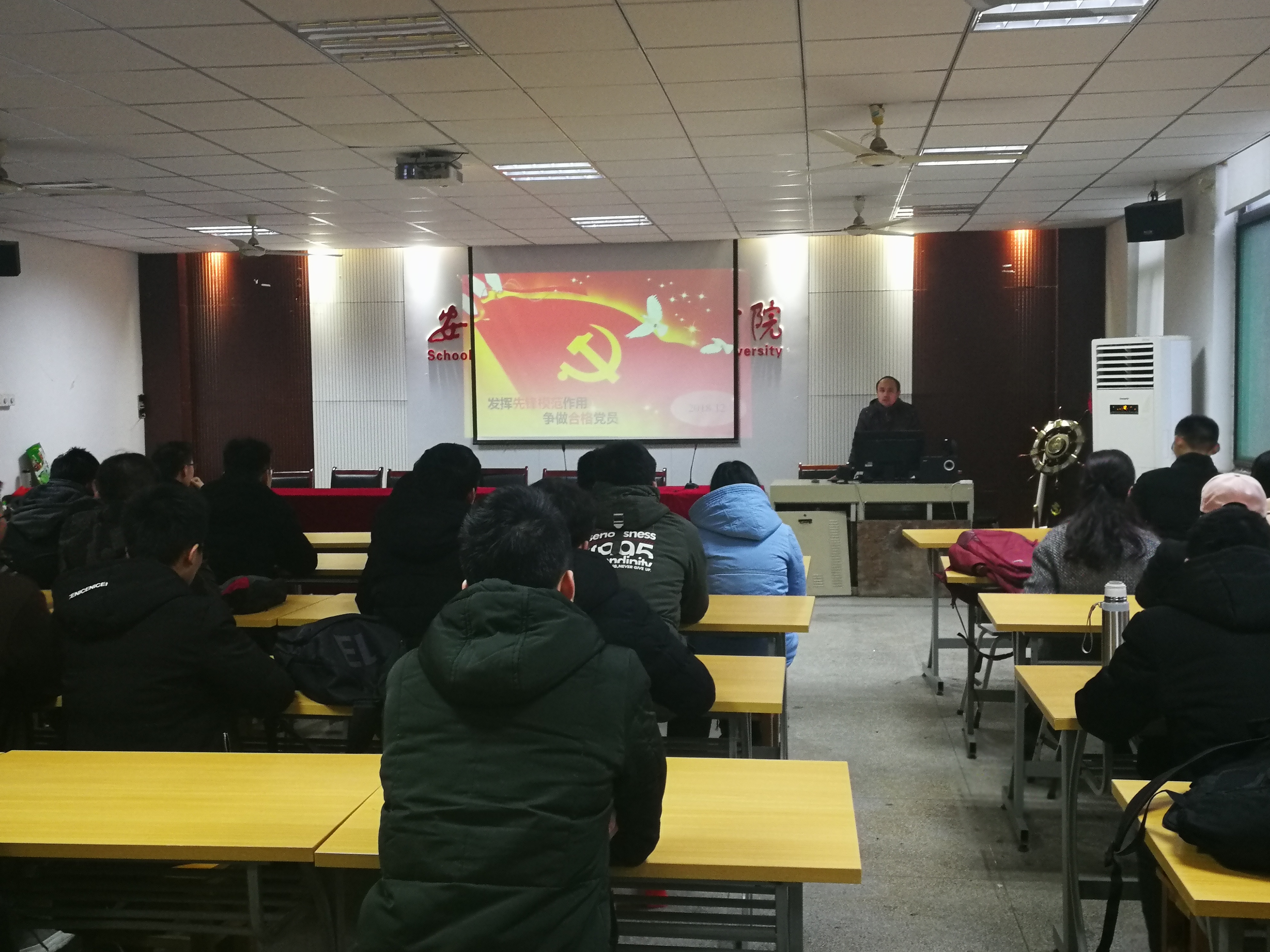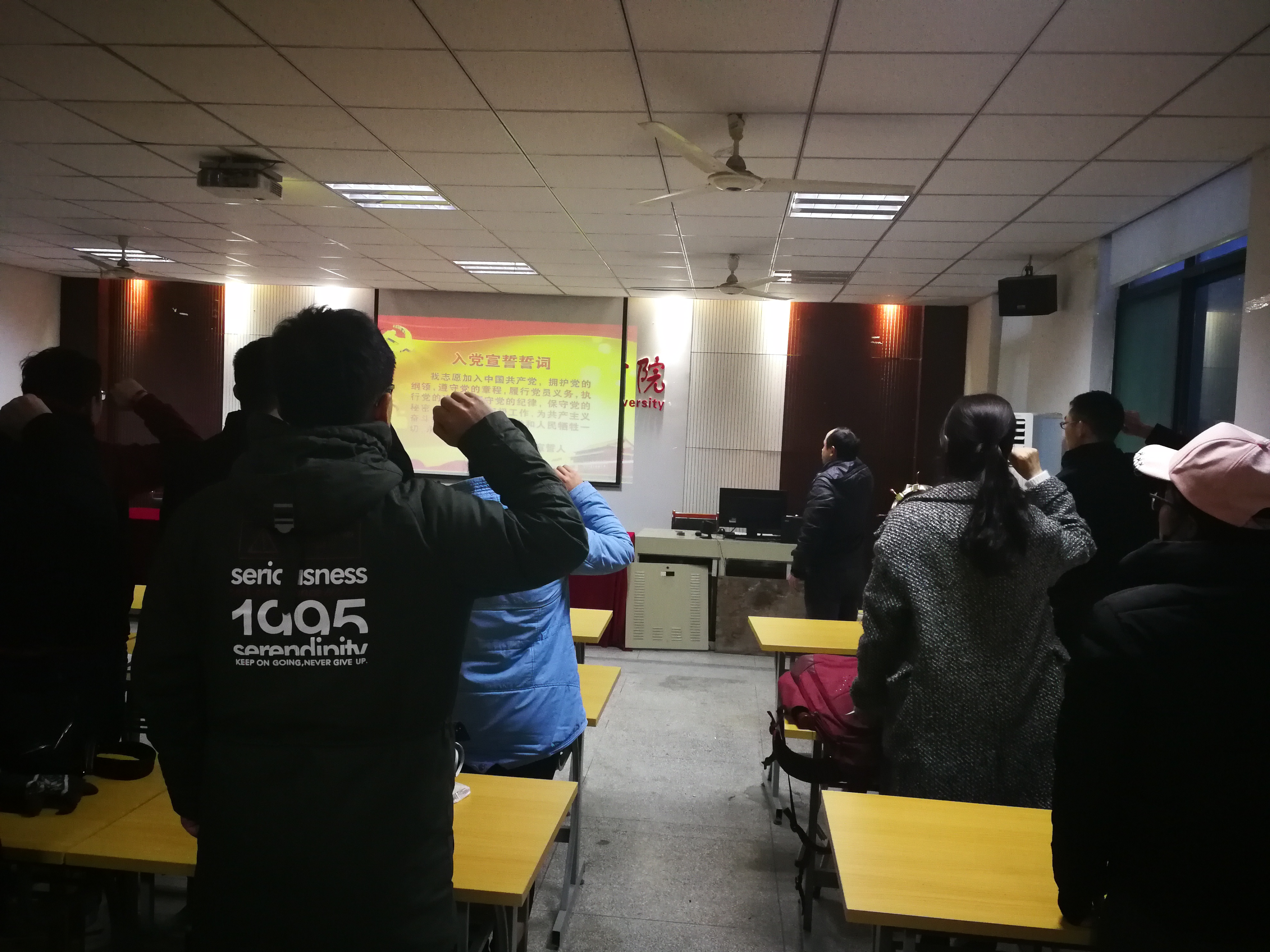 1月8日下午,工学院学生党支部在三教202教室举行新发展预备党员入党宣誓仪式。院党委副书记、纪委书记、副院长孙福,2018年下半年新发展的53名预备党员及部分学生党员代表参加了会议。
