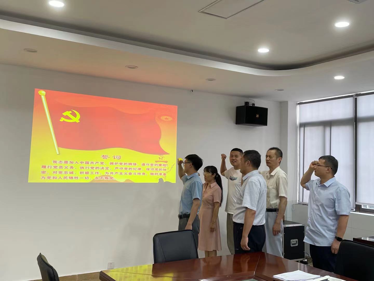 我志愿加入中国共产党……随时准备为党和人民牺牲一切,永不叛党。”面对鲜红的党旗,党支部书记王光定作为领誓人,带领全体党员一起高举右手,庄严宣誓,铿锵的誓词,震撼着在场的每一位党员,一字一句,神圣而豪迈,体现了党员同志们对中国共产党的无限忠诚。