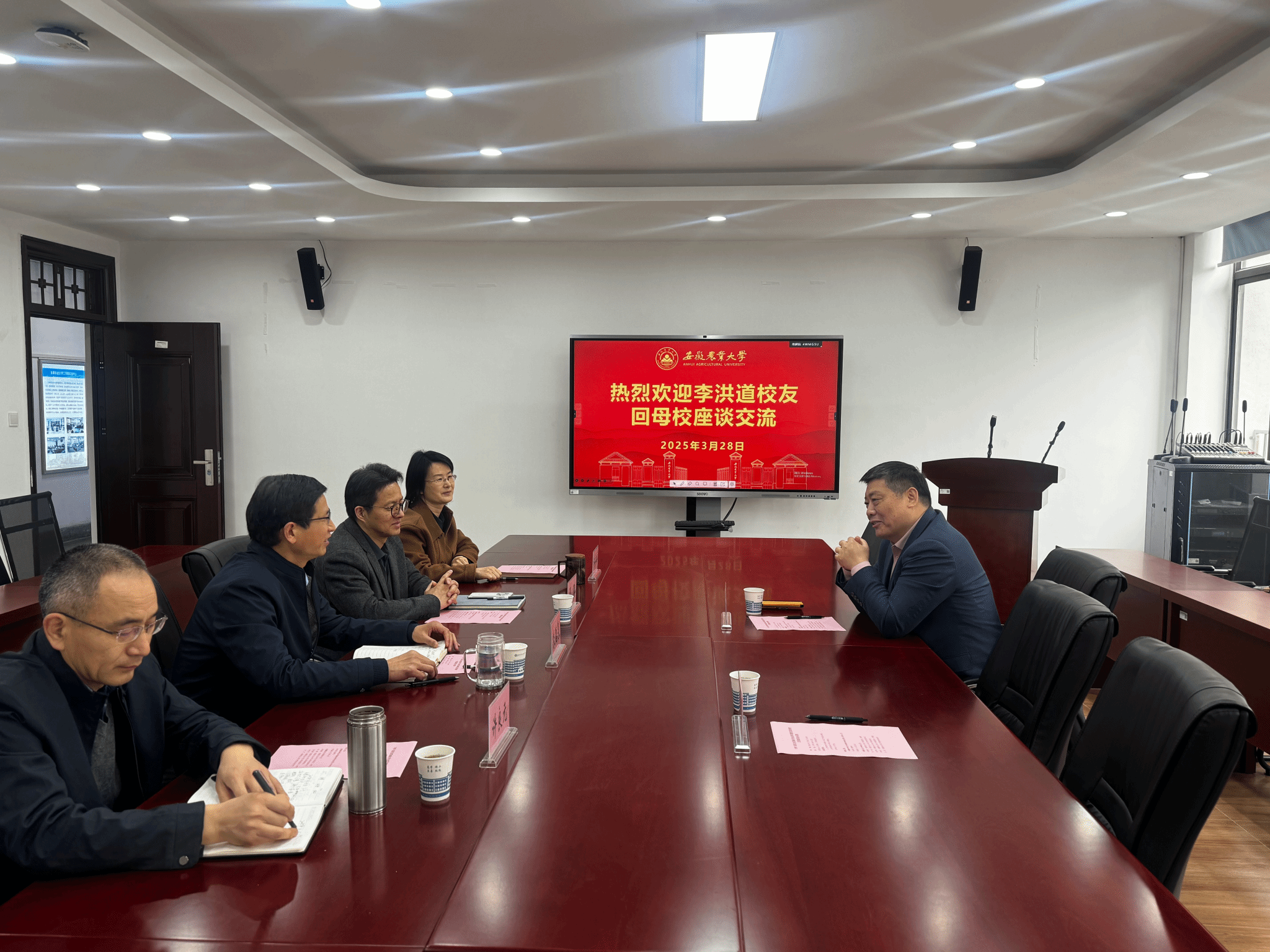 座谈会上,朱德泉对李洪道校友回母校表示热烈欢迎,他从学科建设、科研成果、人才培养等方面详细介绍了学院近年来的发展情况。他表示,校友是学校发展的宝贵财富,期待通过交流深化校企合作,助力学科建设与人才培养。