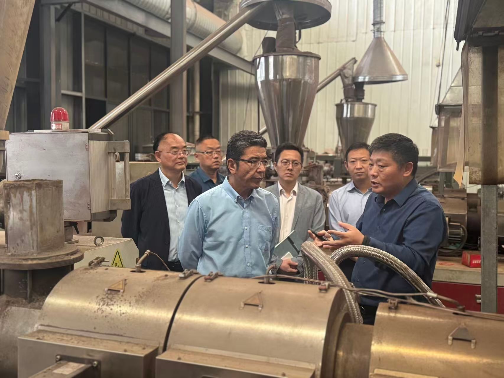 随后,董雨一行前往安徽春和明生环保新材料科技有限公司调研座谈。在公司董事长、我校1995届农业机械化专业校友李洪道的陪同下,董雨一行参观了企业生产车间,详细了解主营业务、技术优势与发展前景。座谈中,双方就人才培养、实习就业、科研合作等内容进行深入交流。