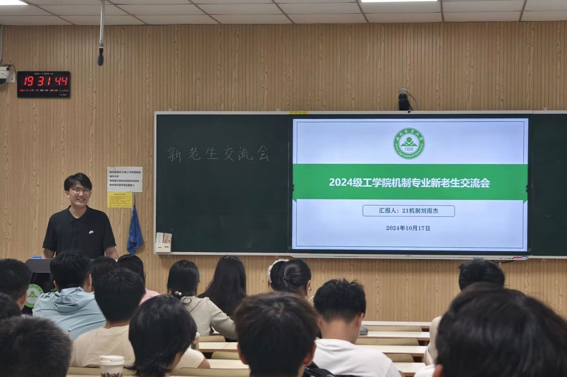 开展“校友开讲啦”活动。10月30日上午,工学院举办“校友开讲啦”活动,活动邀请到安徽环新集团新富动力公司负责人、2015届农机专业校友李平,环新集团ATGE公司技术科长、2017届农机专业校友朱世明,分别结合自身丰富的职场经历,向学弟学妹们传授了职场转型的宝贵经验与专业技能提升的有效策略。