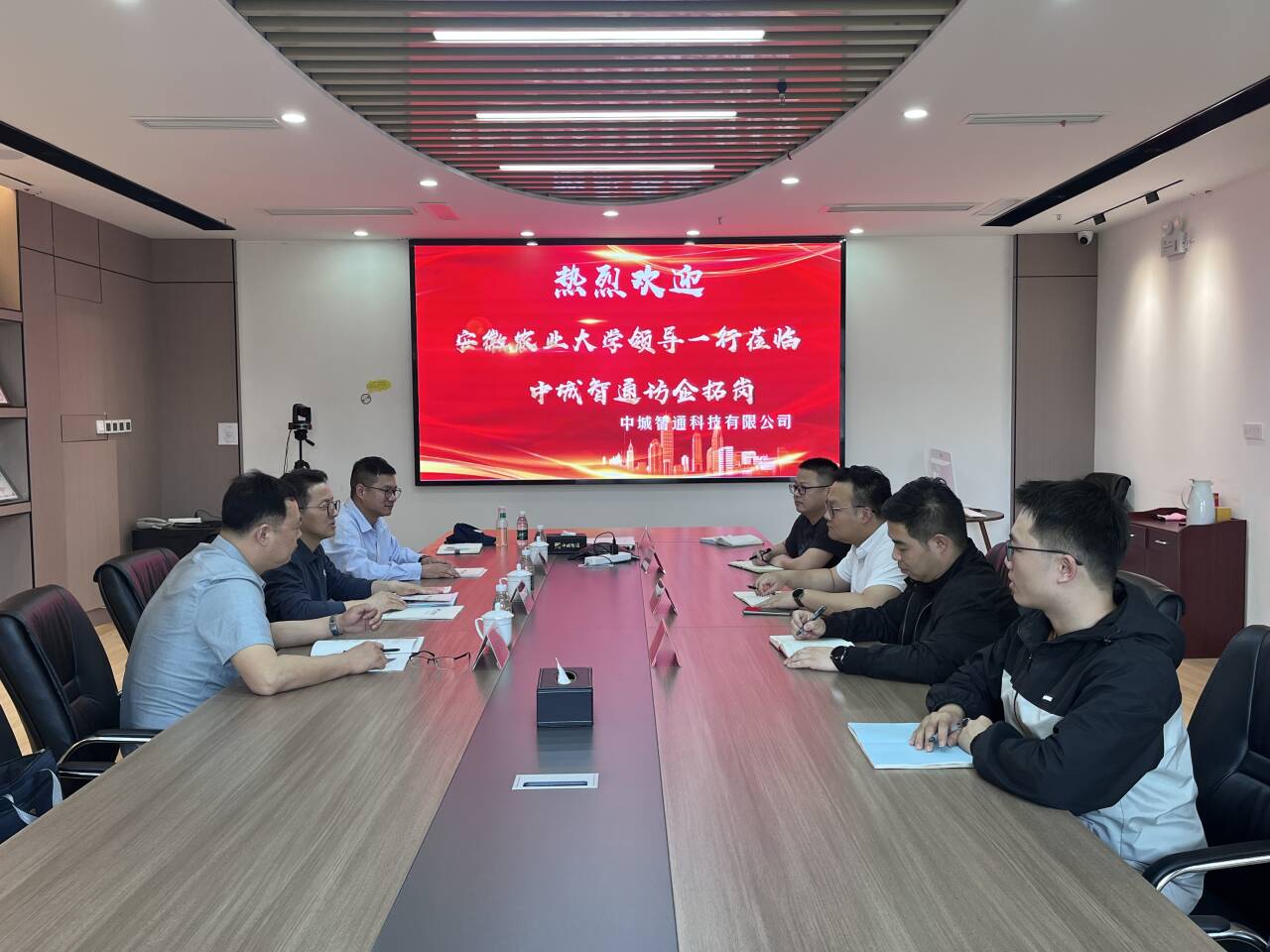 本网讯 4月18日,工学院党委副书记张璐等一行前往中城智通(安徽)科技有限公司开展访企拓岗活动,企业经营部负责人刘帅、工程部负责人叶晓东、技术负责人夏志成、人力部负责人费文婷、工学院校友张剑廷陪同调研。