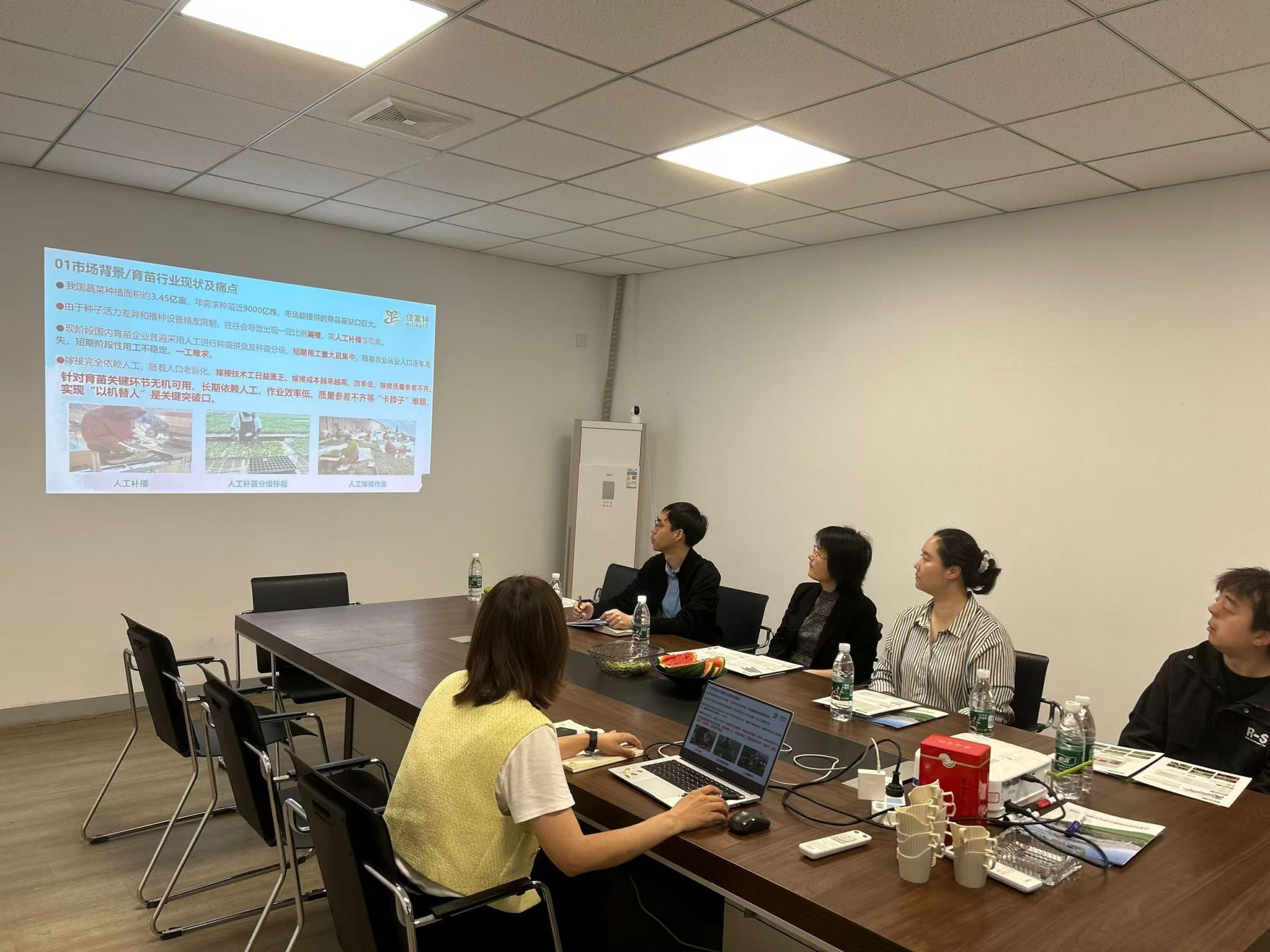本网讯 2025年4月29日,工学院副院长吴冬梅、农机系主任秦宽、农机系副主任熊玮携待就业学生,赴合肥佳富特机器人科技有限责任公司开展访企拓岗活动。合肥佳富特机器人科技有限责任公司董事长林茂先等相关负责人热情接待了我院一行,组织参观了生产与产品车间,现场观看了瓜果、蔬菜自动嫁接机,并召开了座谈会。