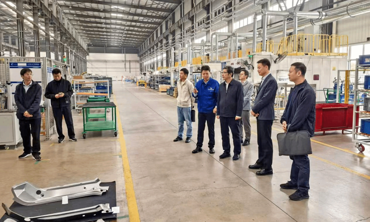 随后,董雨一行前往合肥英利汽车工业有限公司调研交流。在公司人资行政主管王亚东等陪同下,实地参观了企业的生产车间与核心产品线,全面了解了企业在汽车零部件轻量化领域的技术优势、市场布局及未来发展规划。