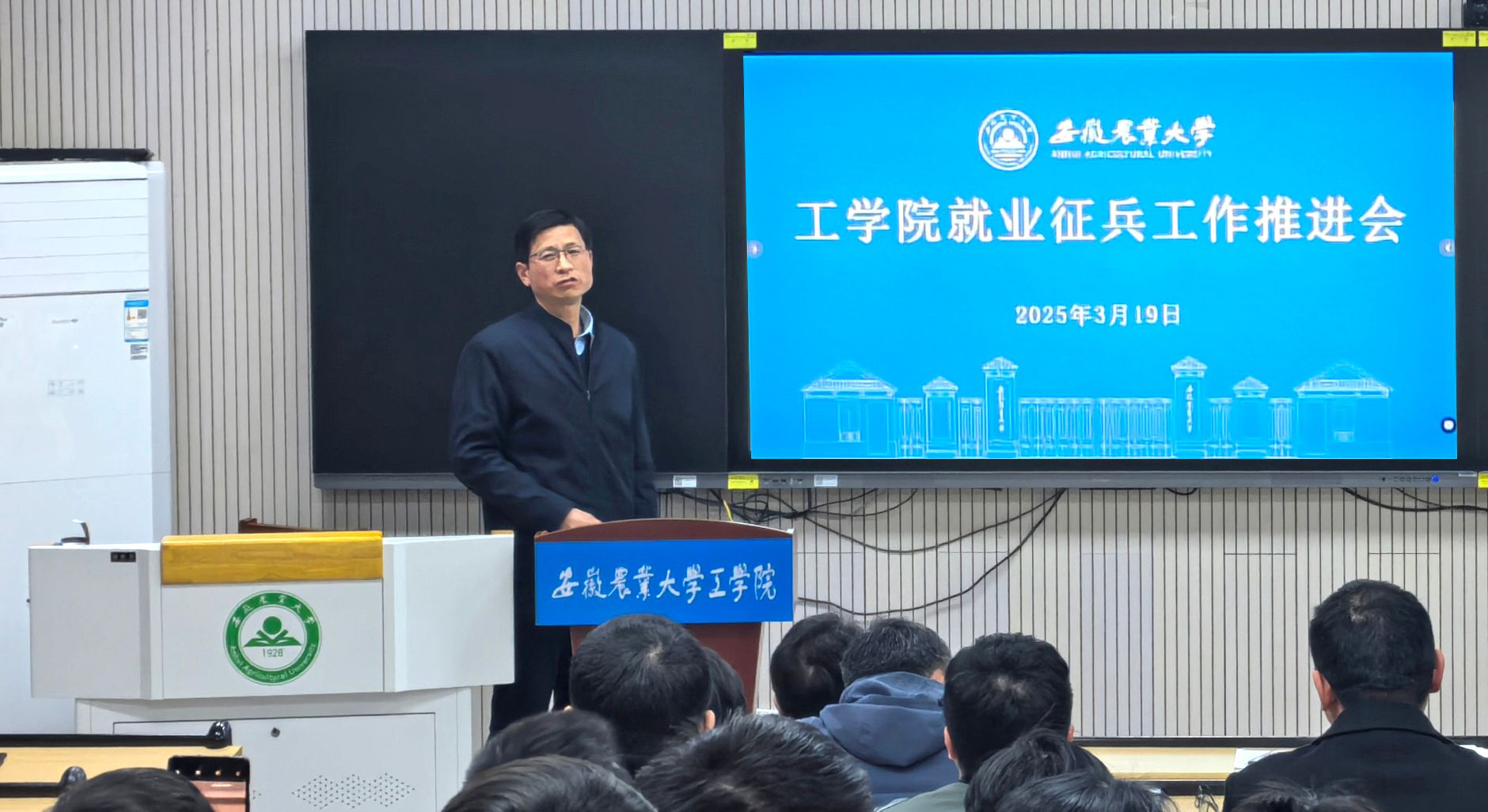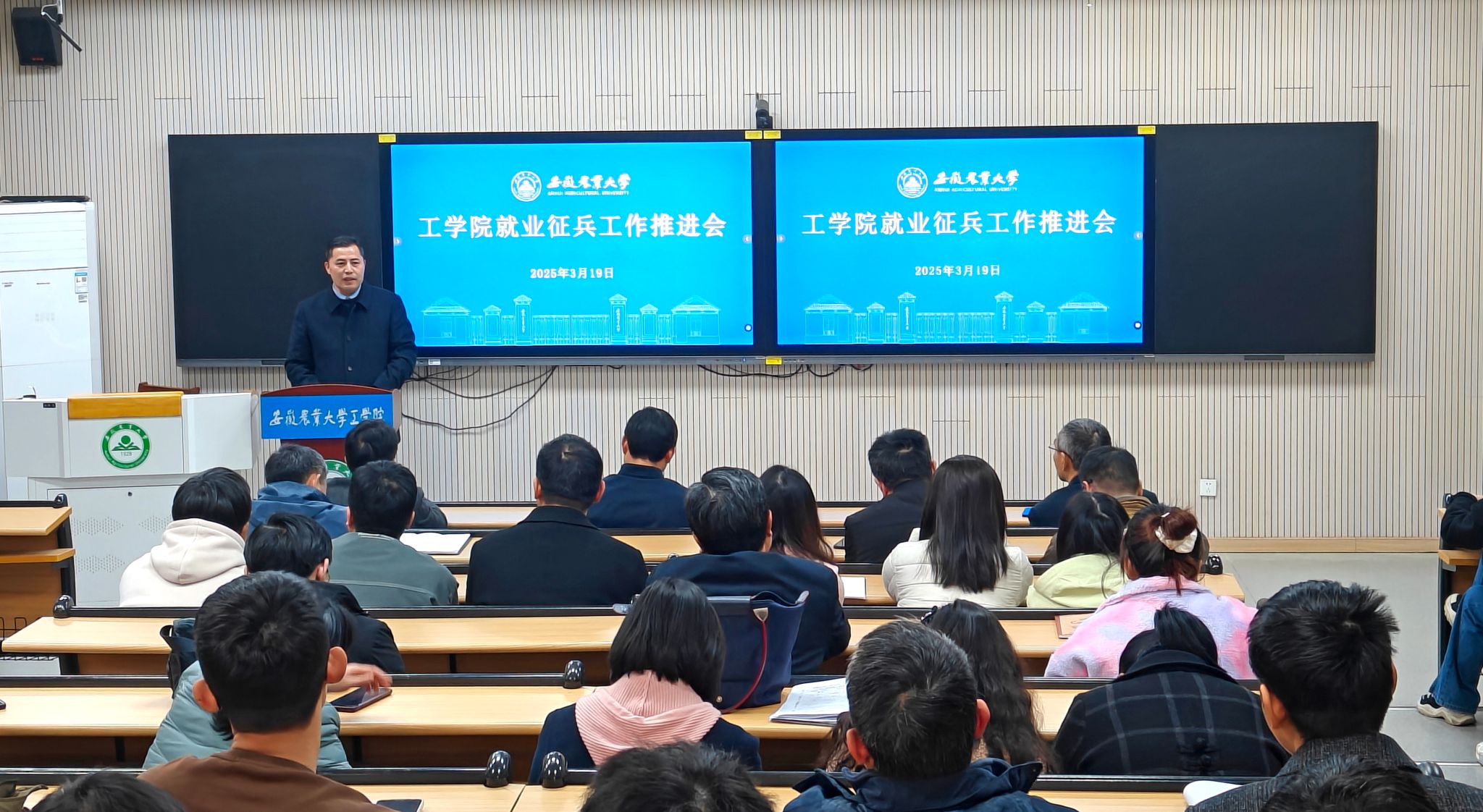 本网讯 3月19日下午,工学院召开2025届毕业生就业征兵工作推进会,学院全体党政领导、各系主任、毕业设计指导老师、毕业班辅导员、就业联络员及征兵工作联络员等参加了会议。