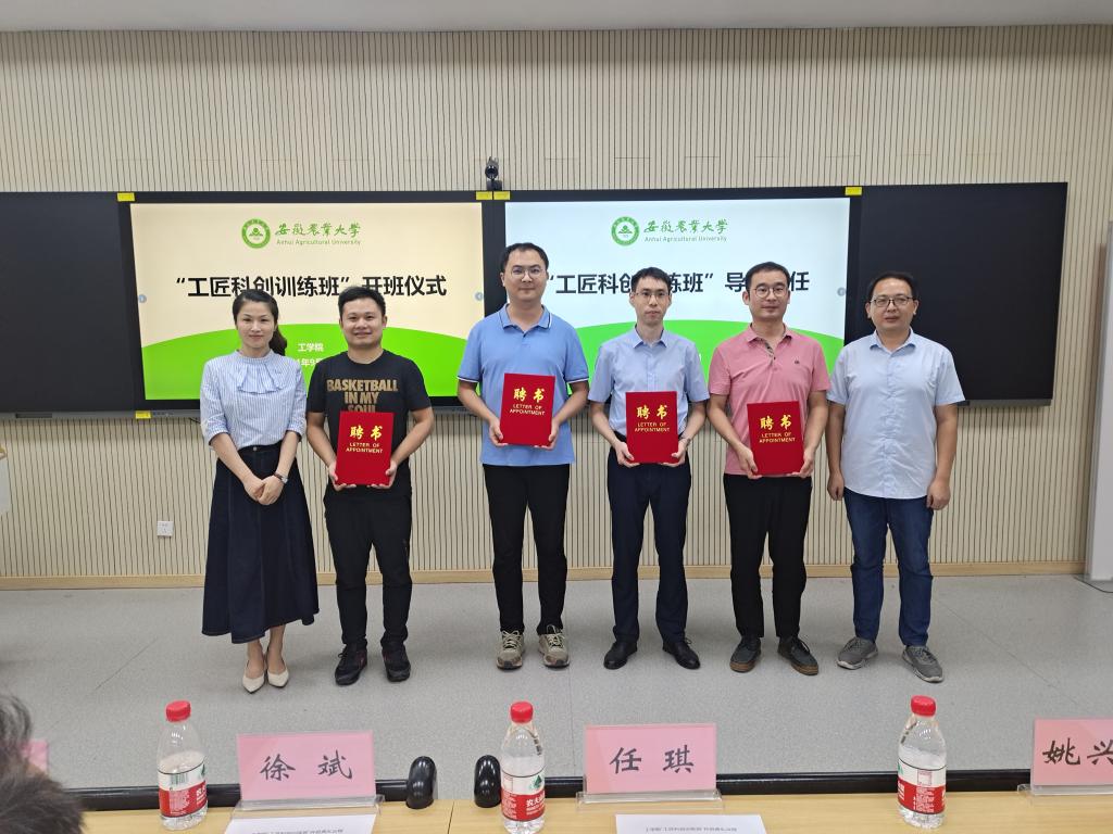 学院党委副书记、副院长张国学介绍了 “工匠科创训练班”的成立背景及学院学科竞赛组织情况,副院长姚兴贵宣读了班级聘任常驻导师和班主任名单,学院党委书记任琪、院长陈黎卿为受聘导师颁发聘书。